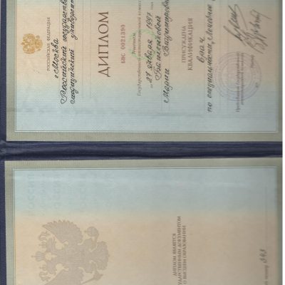 1999 г. — Центральный Научно-исследовательский кожно-венерологический институт МЗ РФ, клиническая ординатура по специальности «Кожные и венерические болезни»